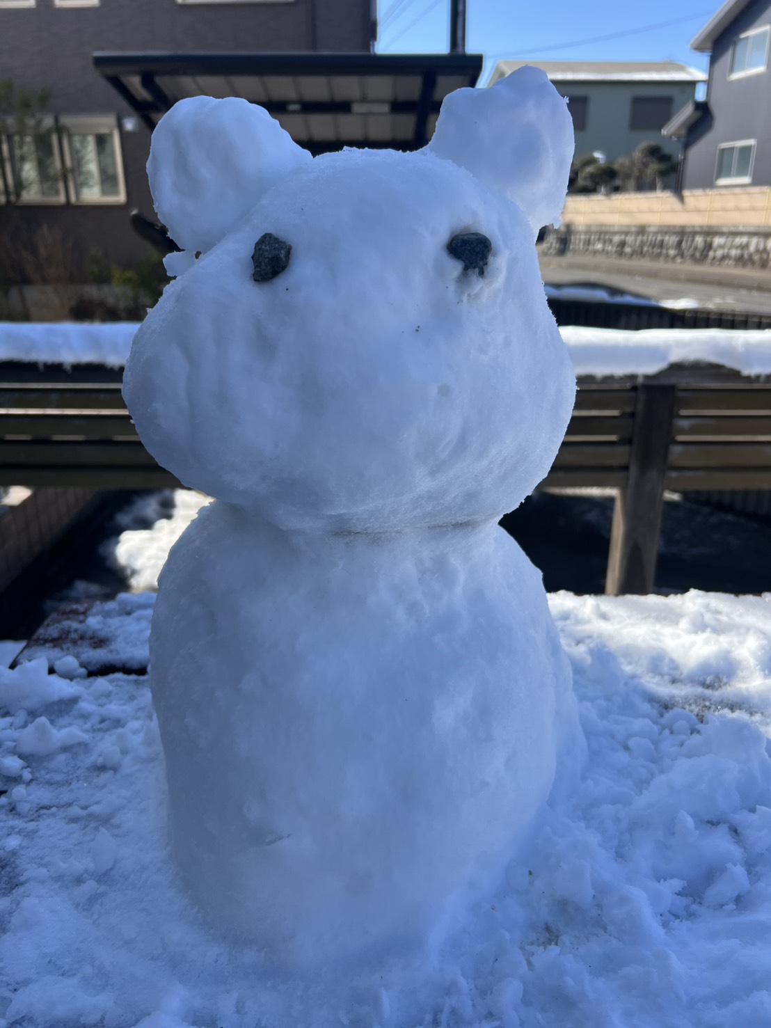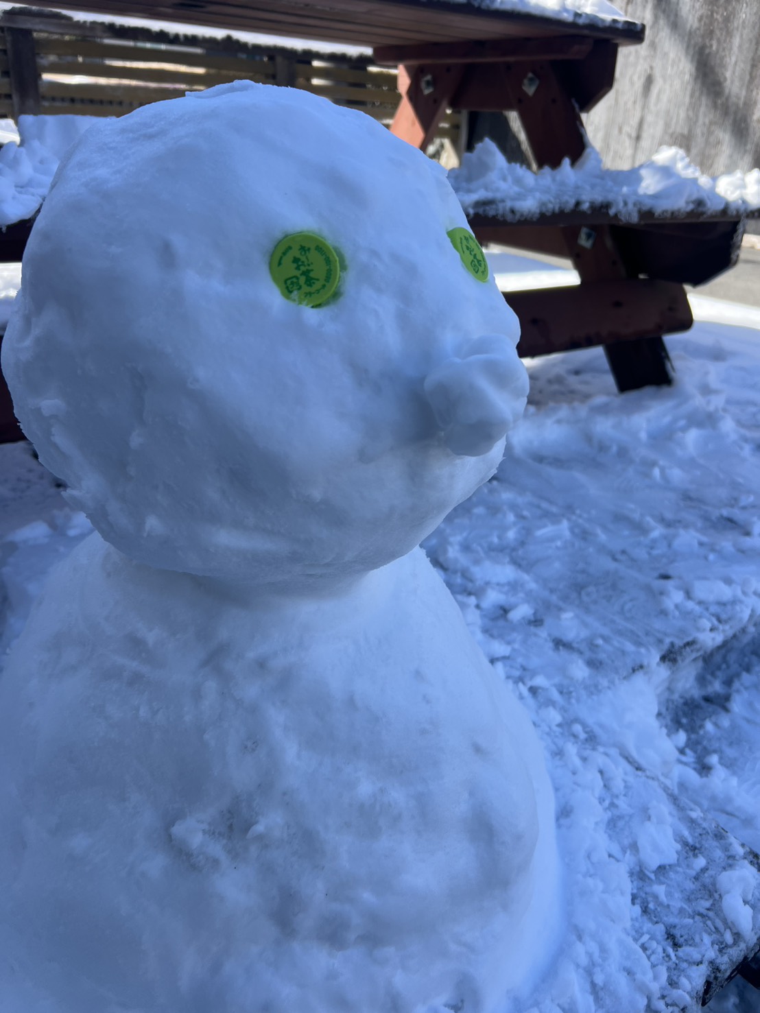 数年ぶりの積雪だったので昼休憩に雪だるまを作りましたが